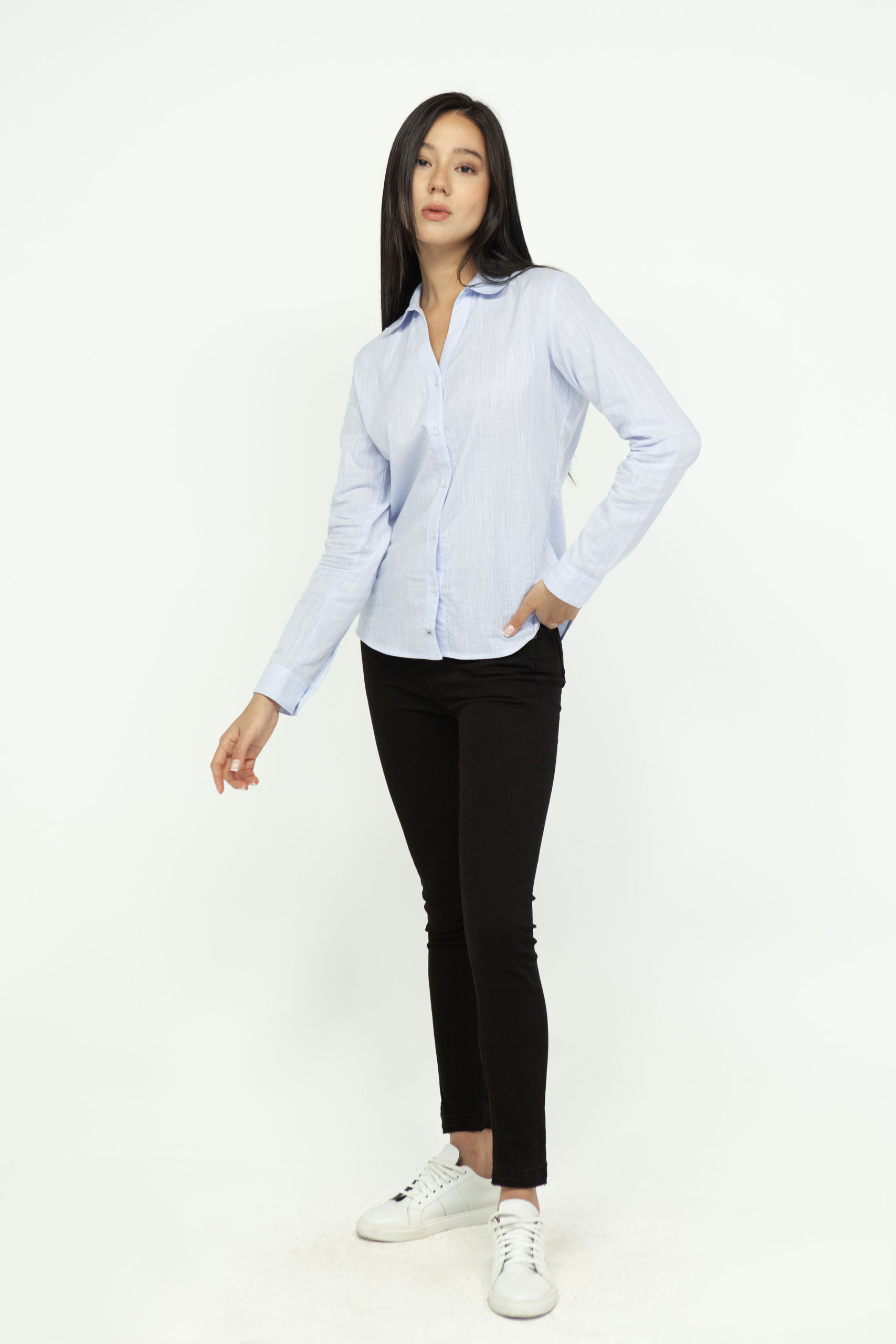 Detalle:Blusa Mujer tipo camisera, manga larga terminada en puño con botones, sin bolsillo.