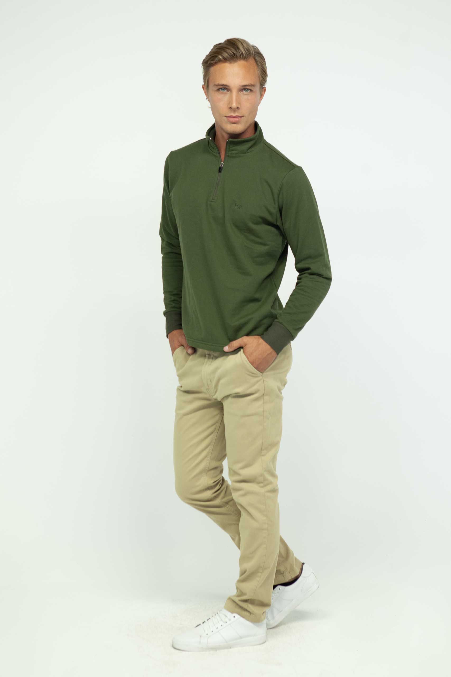 Buzo Hombre Regular Essential Half Zip Verde SS3