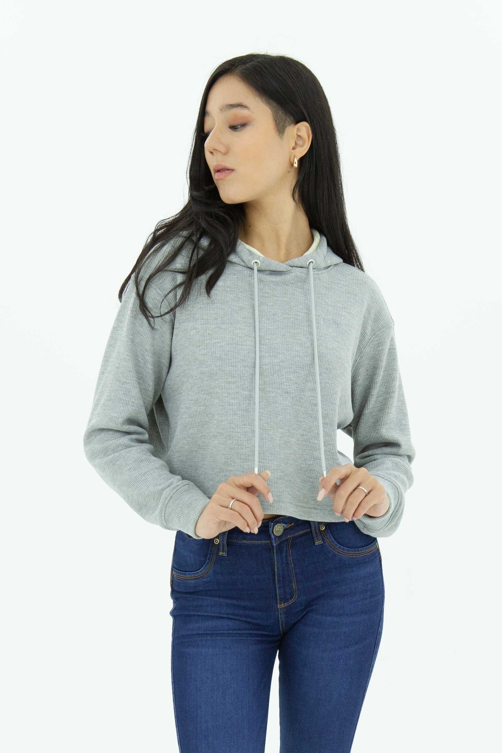 Detalle:corte relajado, con bolsillo tipo canguro en el frente, confeccionada en fleece polar. Puños, cintura y cuello en rib estilo vintage.