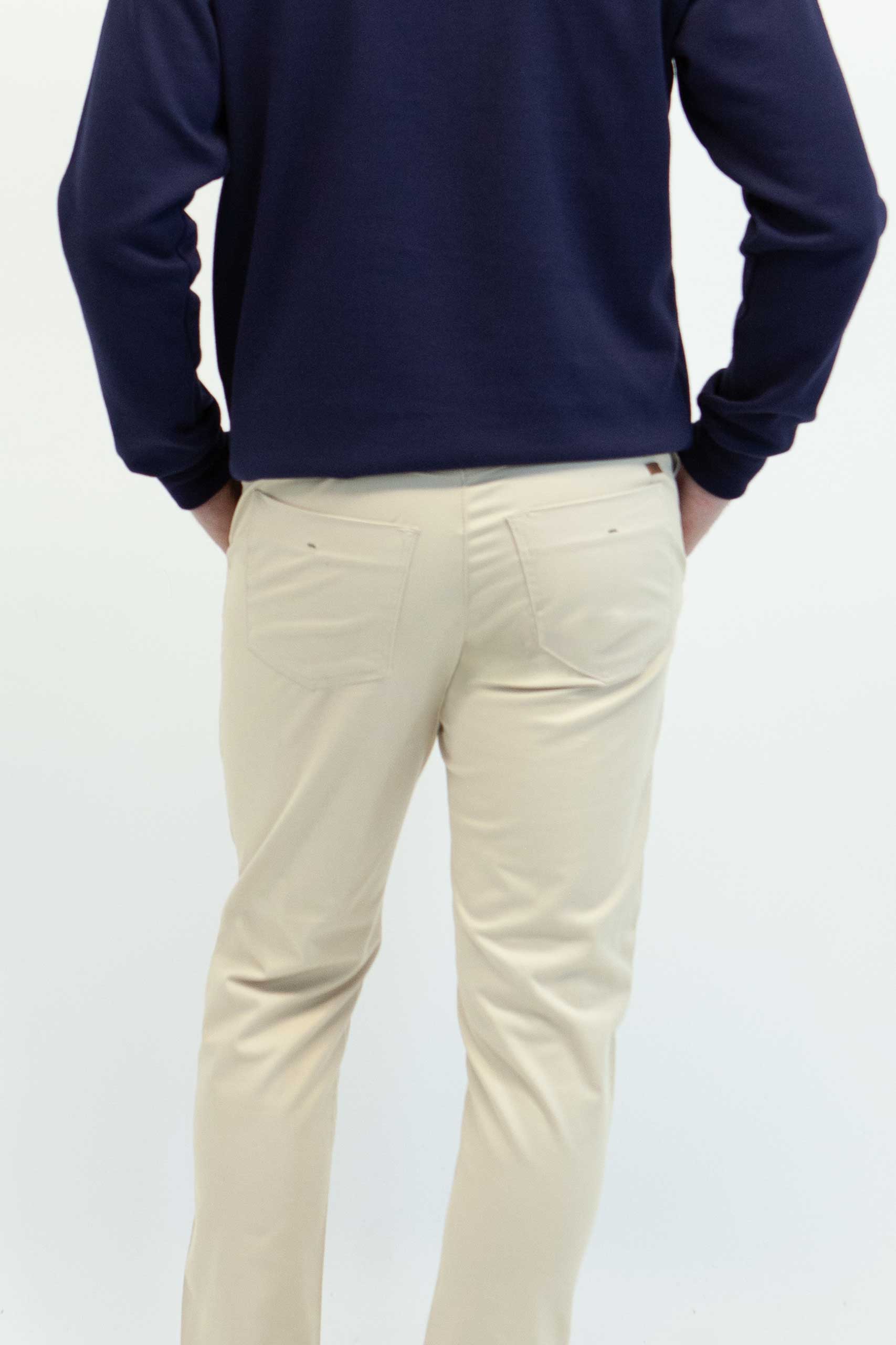 Detalle: Bolsillos laterales en diagonal y bolsillo posterior viviado