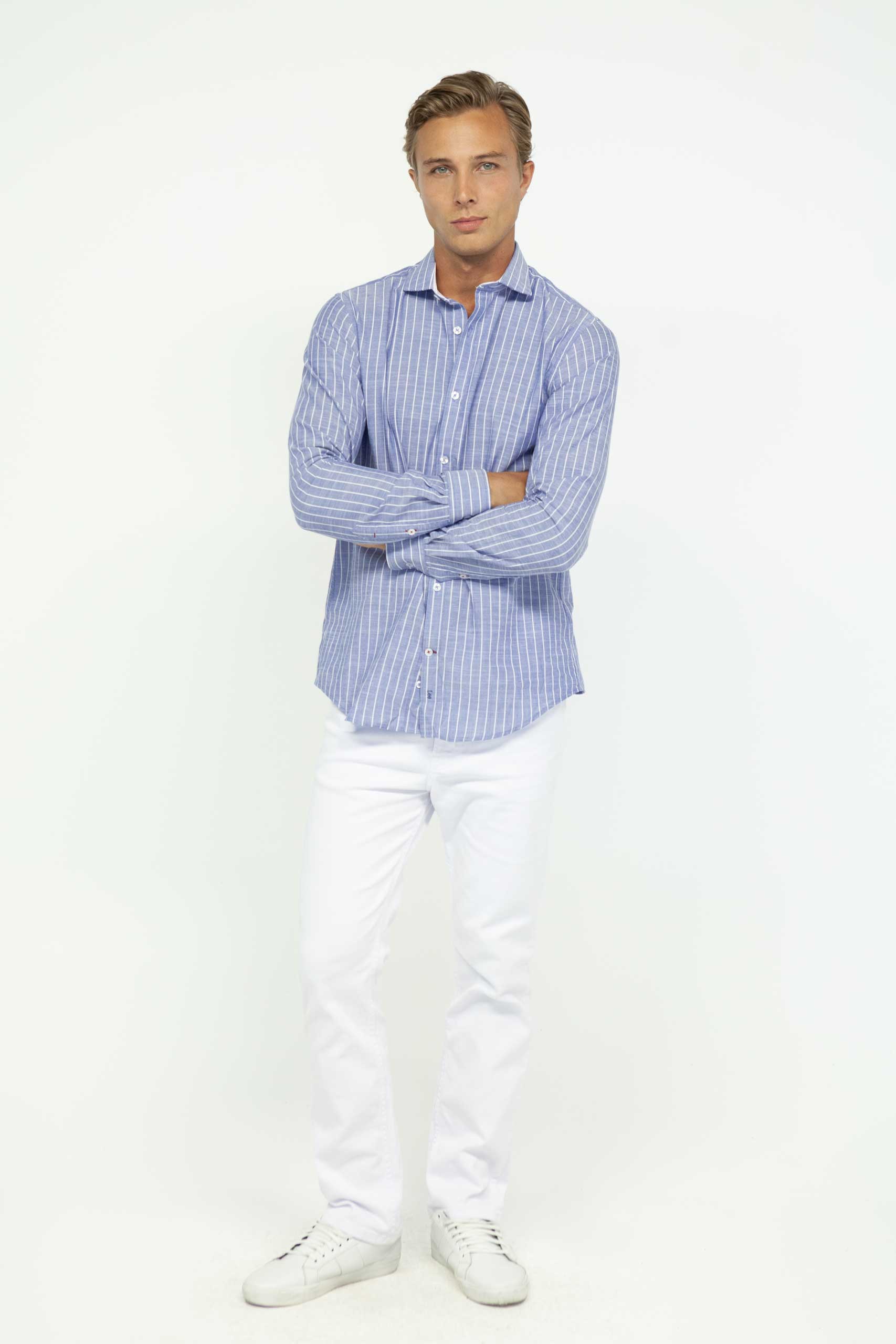 Detalle: Nuestra camisa Custom ofrece un look casual, manga larga, sin bolsillos, cuello alto, Ideal para el día a día, ofreciendo comodidad, el complemento perfecto para cualquier denim!