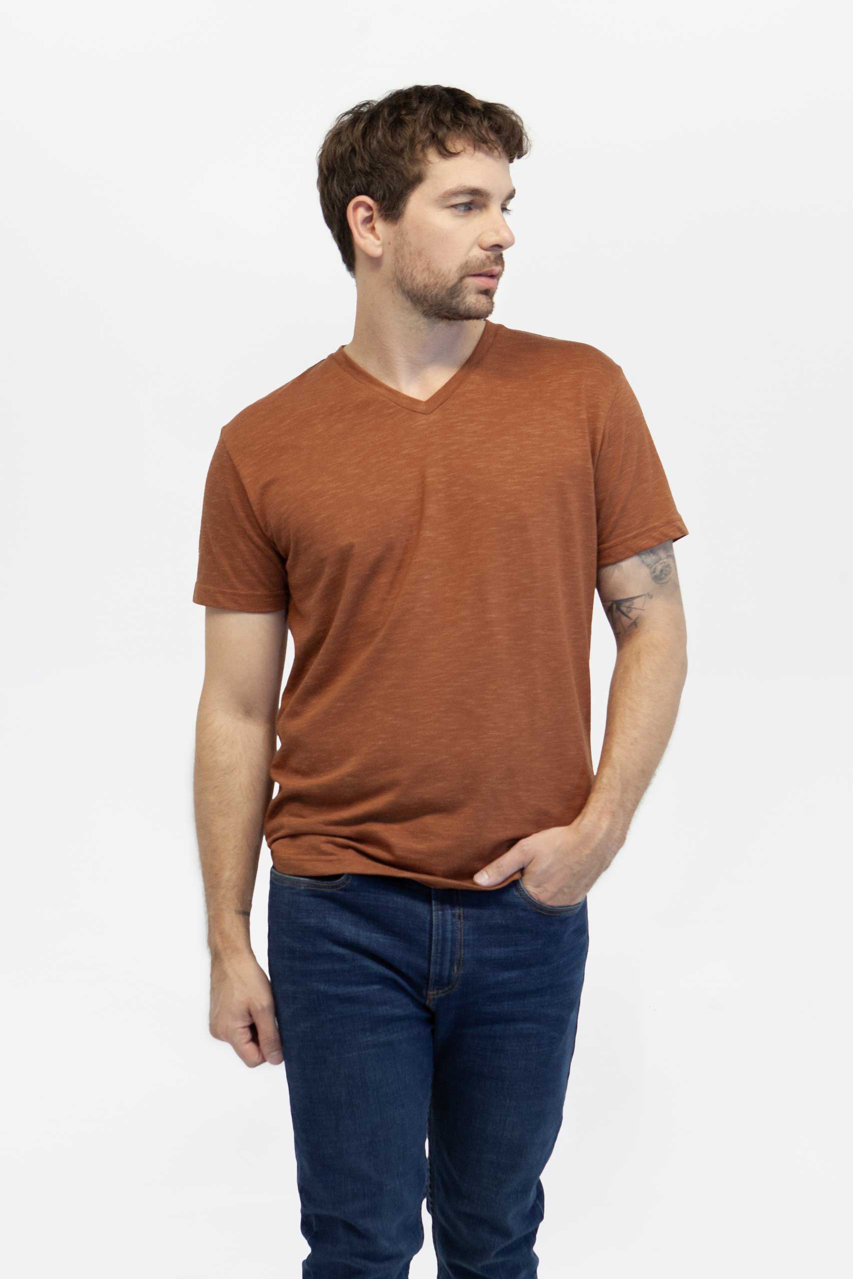 Camiseta hombre regular v neck terracota fw5