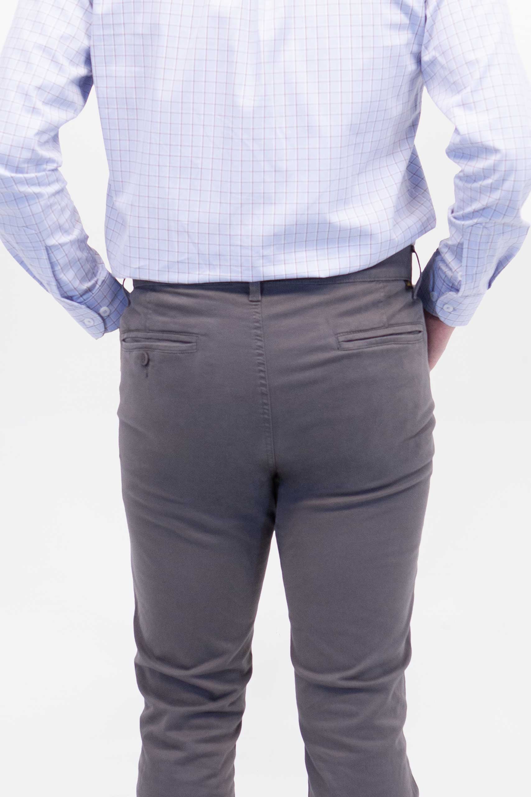 Detalle: chino clásico que se reelabora en ajuste slim, con pierna y tobillo ajustados que brindan una silueta reelaborada, fresca y juvenil.