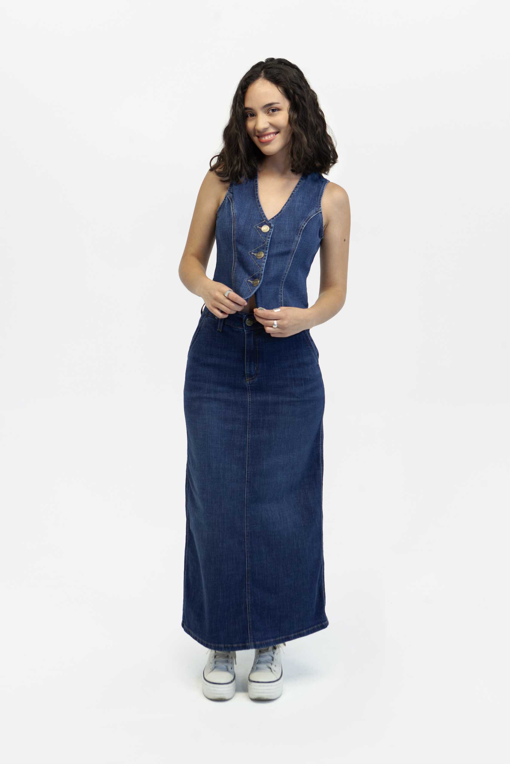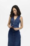 Detalle: Nuestro icónico chaleco vaquero. Con detalles que se mantienen desde sus inicios en su construcción que incluyen 5 botones y cuello en v, combinando estilos juveniles, así como un look fresco ideal para outfits casuales.
