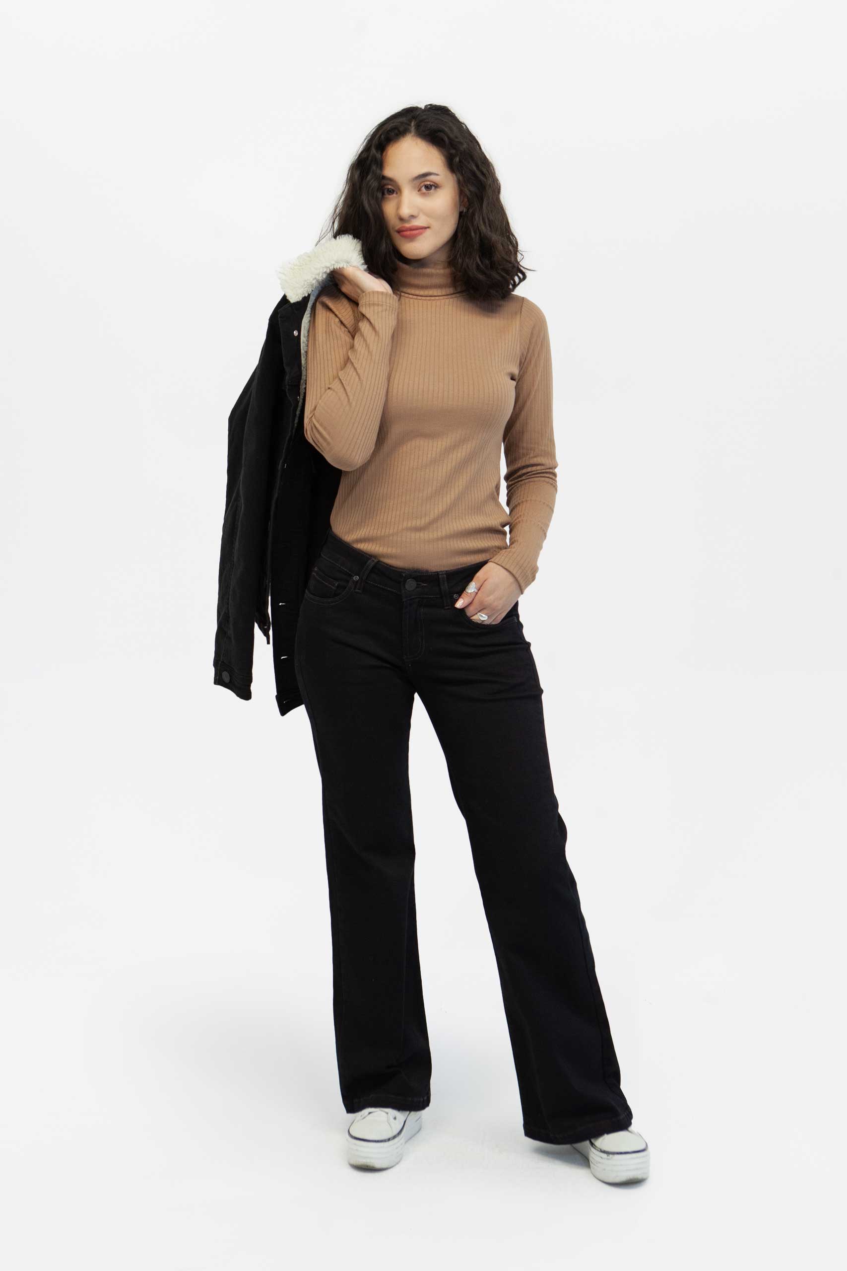 Detalle: Pantalón de cintura alta con corte bootcut que se ensancha ligeramente en la bota, brindando un estilo equilibrado, estilizado y moderno.