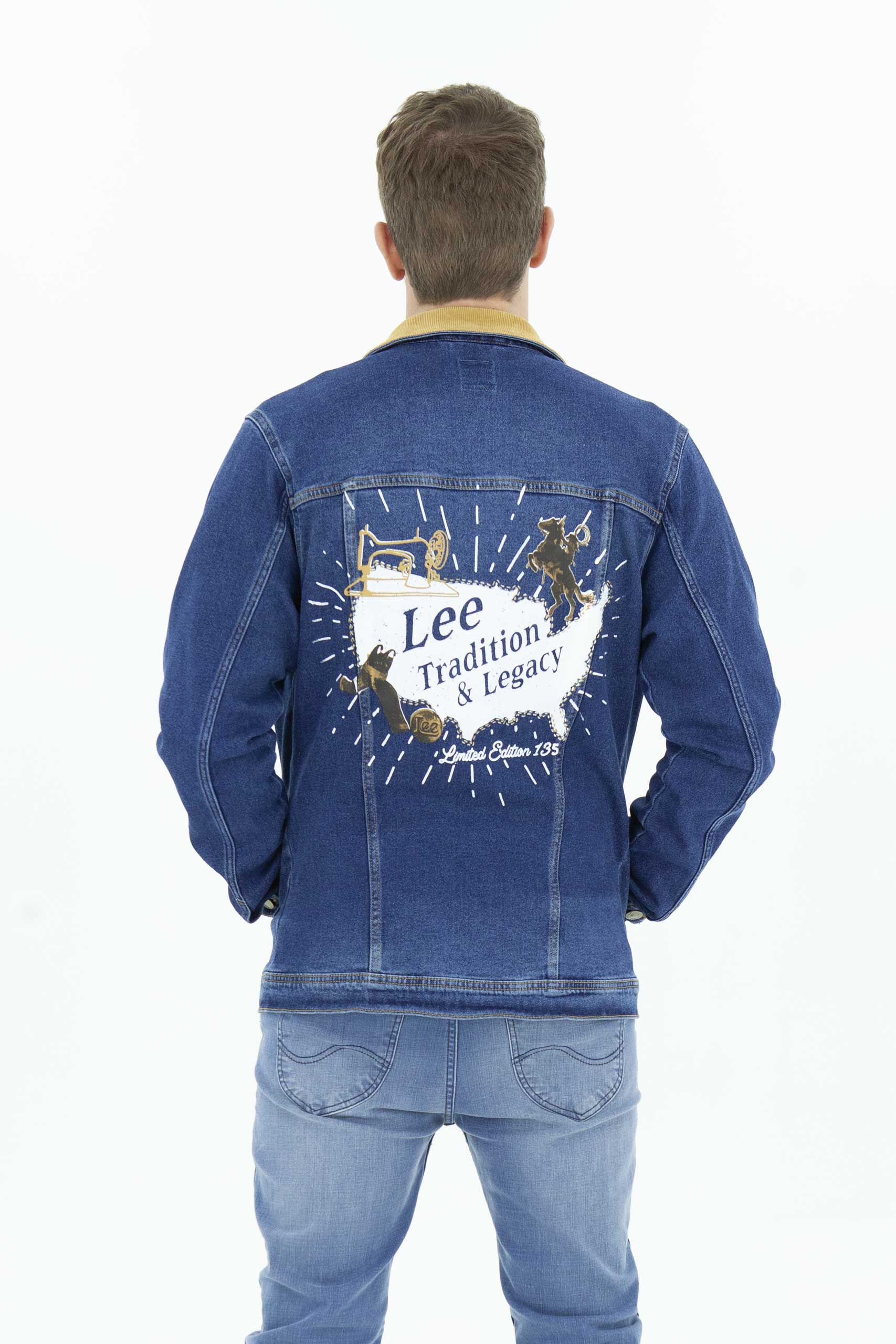 Detalle: Chaqueta clásica en denim, costuras en forma zigzag característica de la marca, logo icónico en la parte posterior, bolsillos laterales viviados, bolsillos en el pecho con botones.